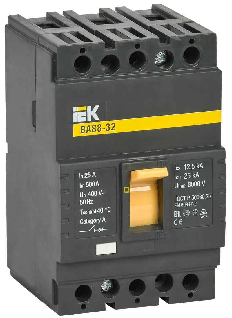 Автоматические выключатели ВА88 предназначены для проведения тока в нормальном режиме и отключения тока при коротких замыканиях, перегрузке, недопустимых снижениях напряжения, а также для оперативных включений и отключений участков электрических цепей и рассчитаны для эксплуатации в электроустановках с номинальным рабочим напряжением до 400 В и на номинальные токи от 12,5 до 1600 А.